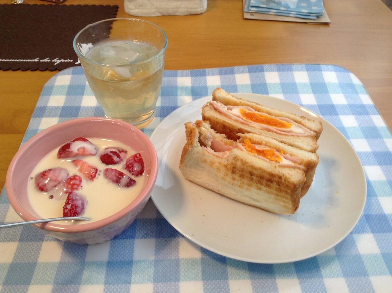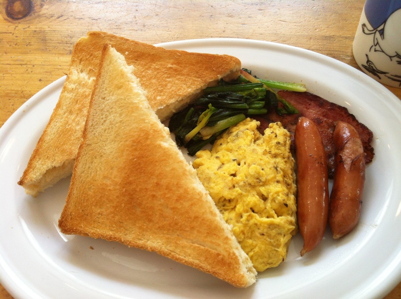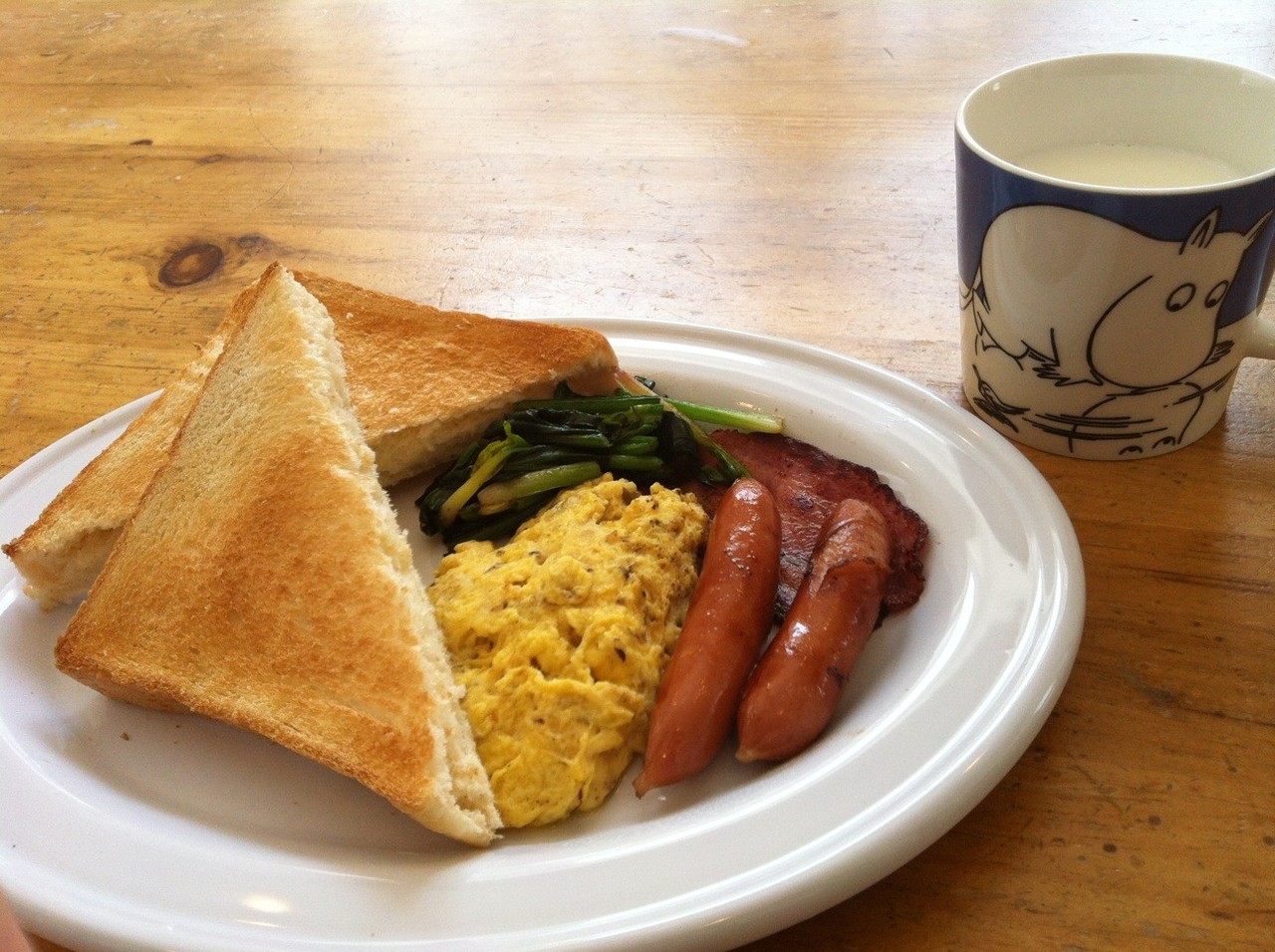 スクランブルエッグに焦げ目付いてるのが大幅減点なんだよなw