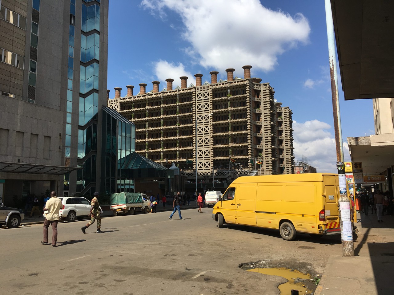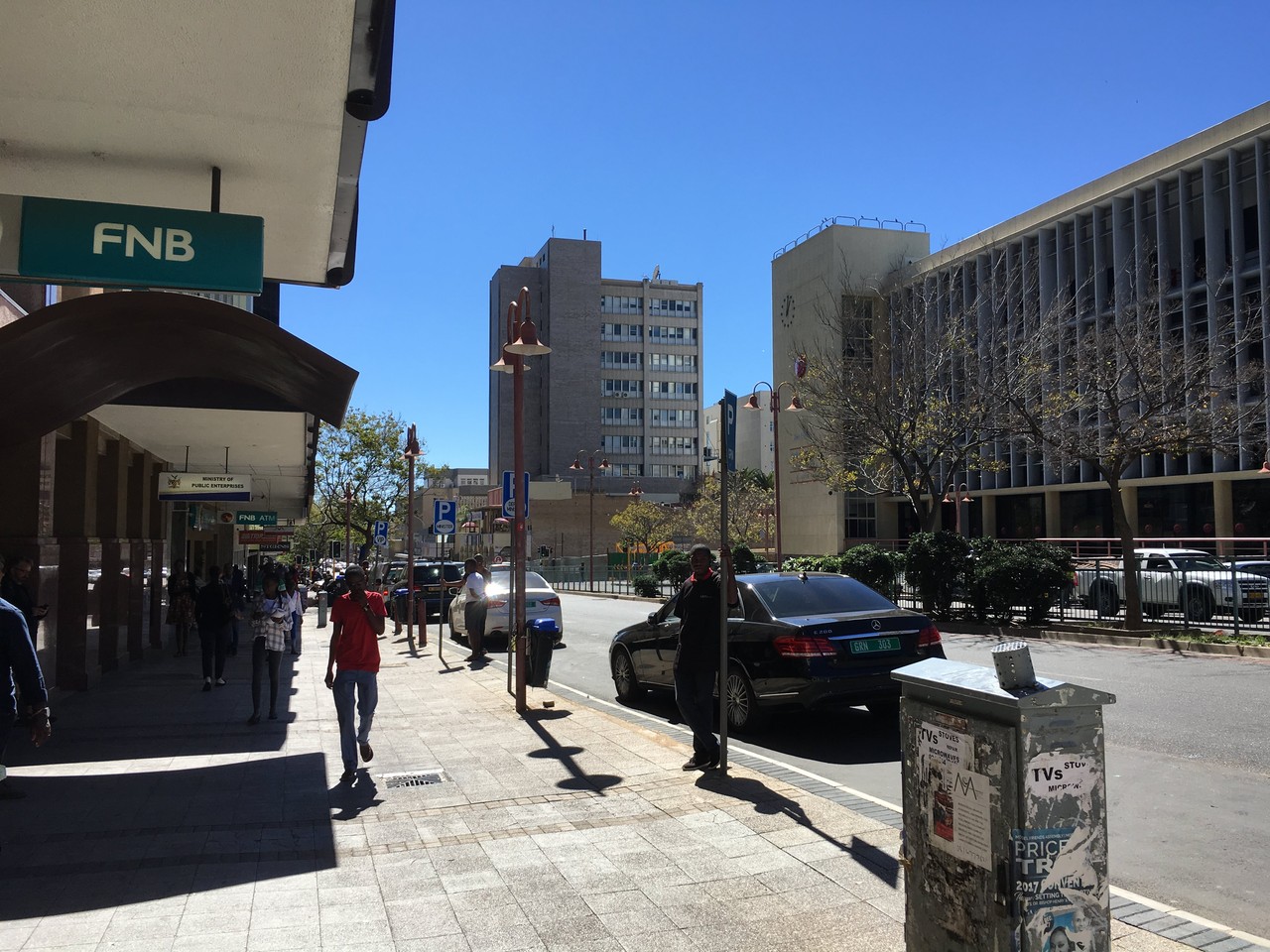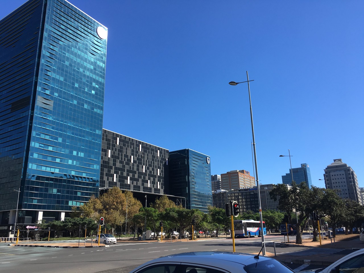 翌日は早起き。オーナーがヨハネスブルグ中心部へいくバスを教えてくれたので、それで例のCBDへ向かう。
