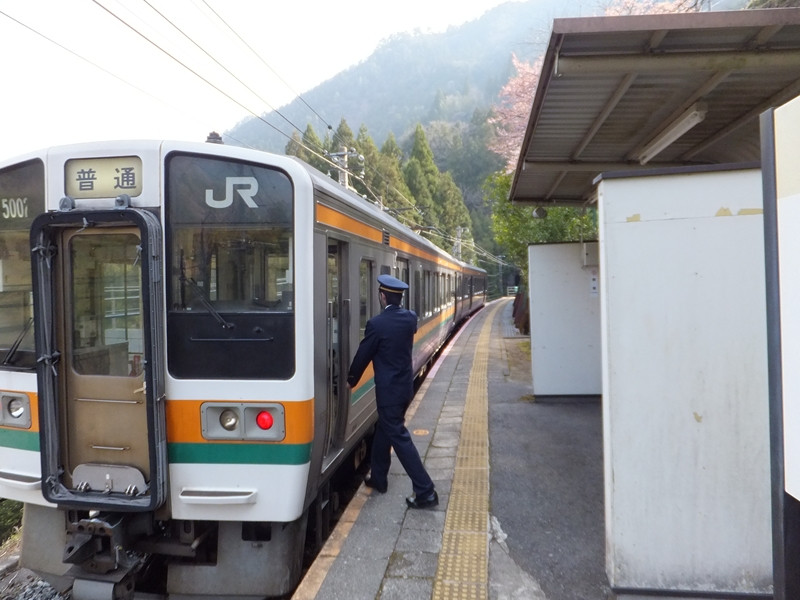 17時24分 辰野駅で運転士と車掌が交代