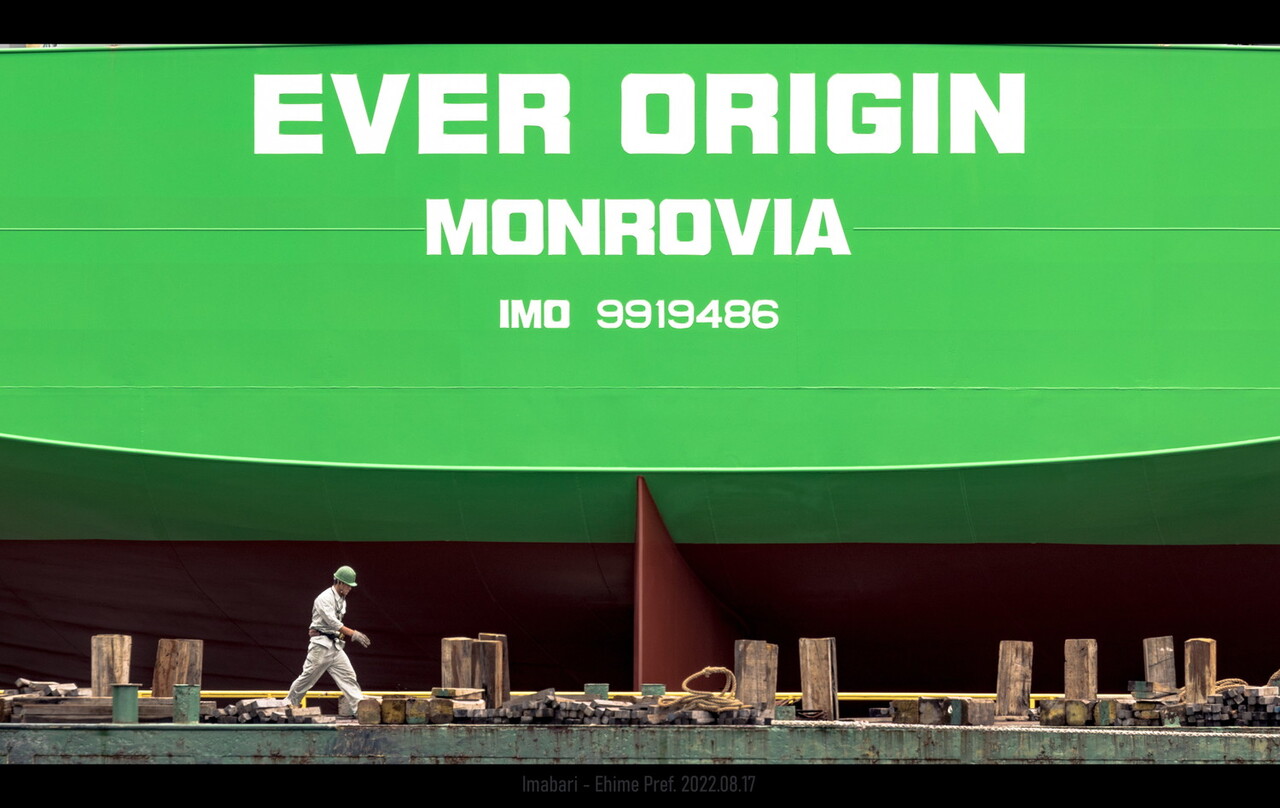これは今治造船株式会社の本社工場で撮影した造船所の風景です。