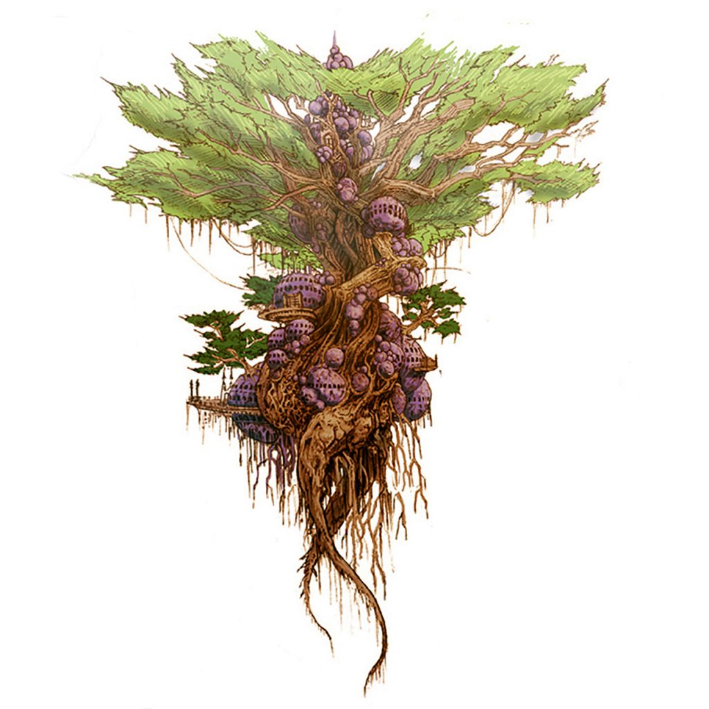 大樹に寄生した植物を改修して作った居城みたいな設定で描いてた気がします