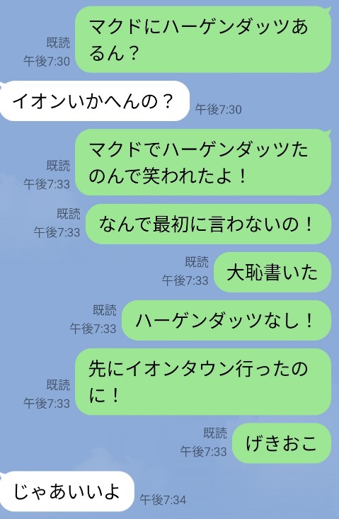 ハーゲンダッツクッキーアンドクリーム」(LINE原文まま)