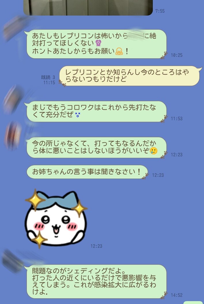 なんかレプリコン打ったらシェディングの影響で周囲がやばくなる→入店拒否されるらしい