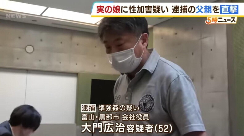 準強姦の疑いで逮捕されたのは富山県黒部市の会社役員・大門広治容疑者(52)です。警察などによりますと、大門容疑者は2016年、当時高校2年生だった実の娘・里帆さんに対して、抵抗できない状態だと知りながら性的暴行を加えた疑いが持たれています。